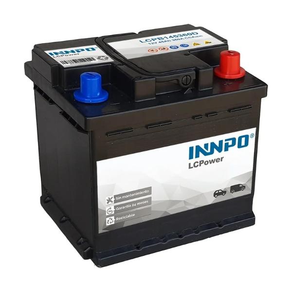 Esta batería INNPO, de 12 Voltios, tiene una capacidad de 45Ah con una potencia de arranque de 360A. Sus dimensiones son: 208x173x176 mm. Es una batería de arranque y se utiliza en todo tipo de vehícu